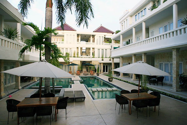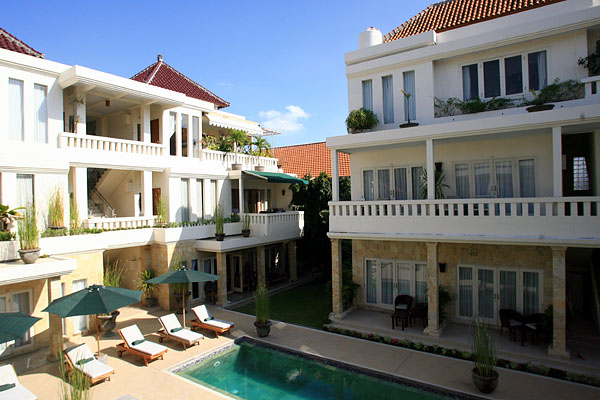 コートヤードホテル。陽が当たると白壁が美しい。 |