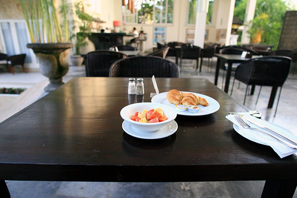 朝食はやや少なめ。しかし、クロアッサンはホテルのレベルを示している・・・。 |