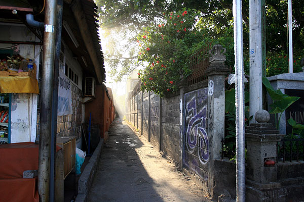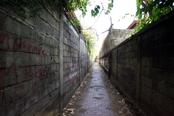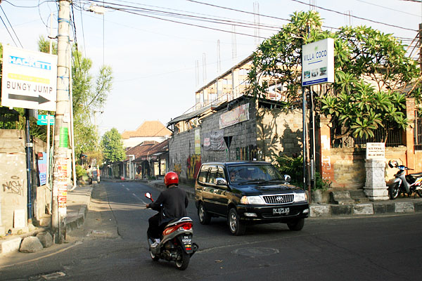 パンタイに向かう道。オンビーチのホテルでないとここから行くことになる。 |