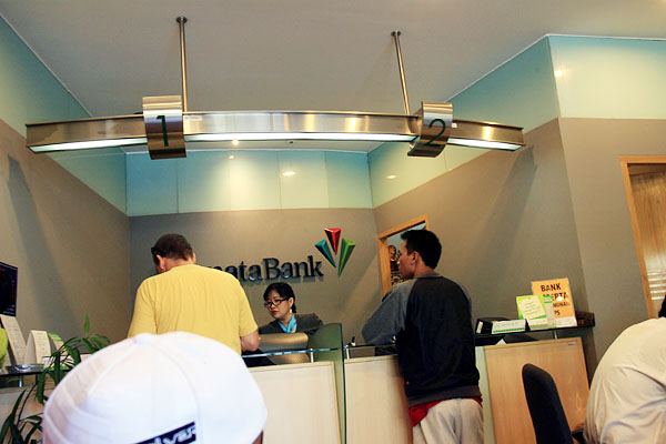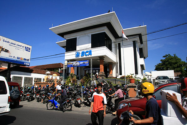 この地域の銀行。今では立派な建物になってしまったが、この当時はまだ窓口は2つ。 |