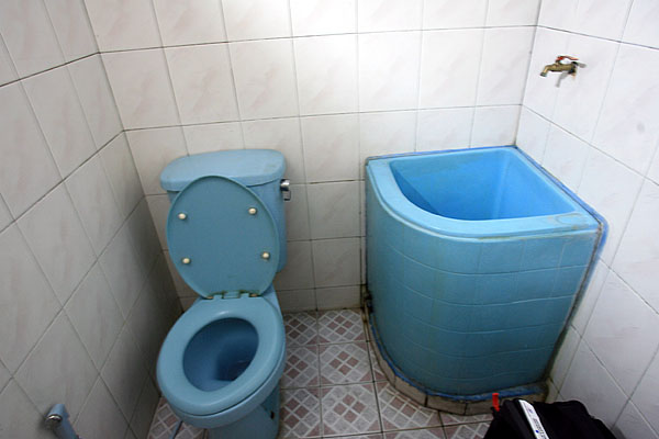 ![]() プラマ社クタのトイレ。ここは水洗だったが・・・。 |