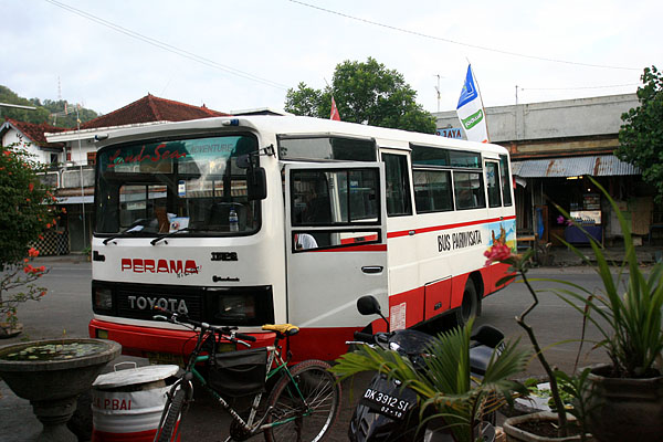 ![]() ウブドのプラマ社ターミナル。ここでロビナ方面からの客は乗り換えて合流。 |